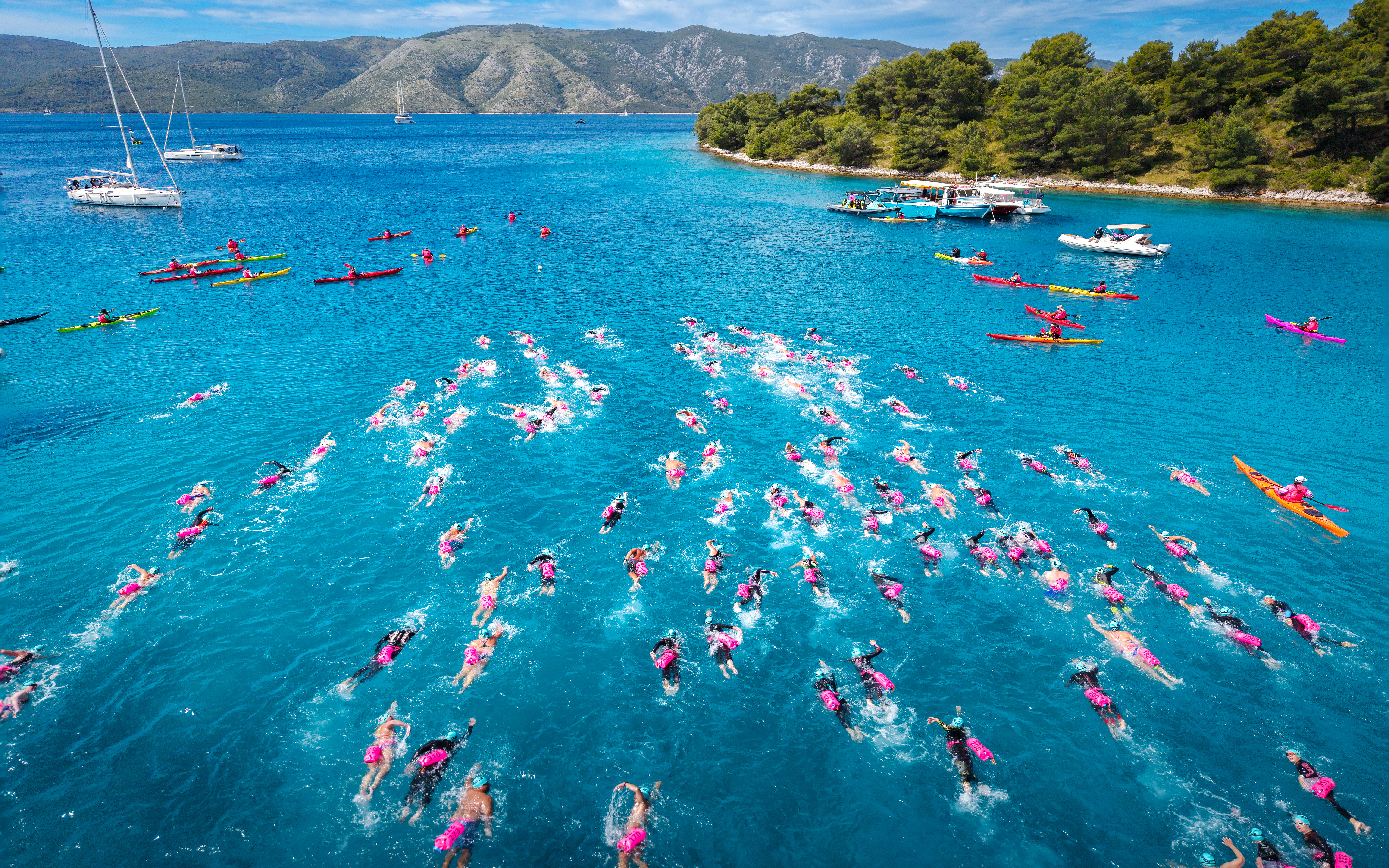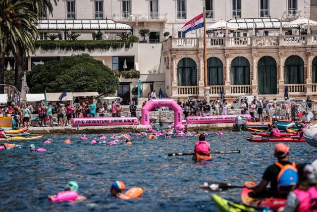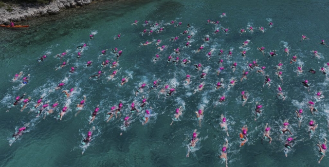 Our last incredible event day, with a 4.2km swim (red) out from our hotel bay, around the eastern side of Palmizana and winding our way towards the event finish! You've almost done it ... you just need to jump back in for a celebratory 600m swim from the island in Hvar Town Harbour into the town, where a celebratory prize giving is waiting for you!